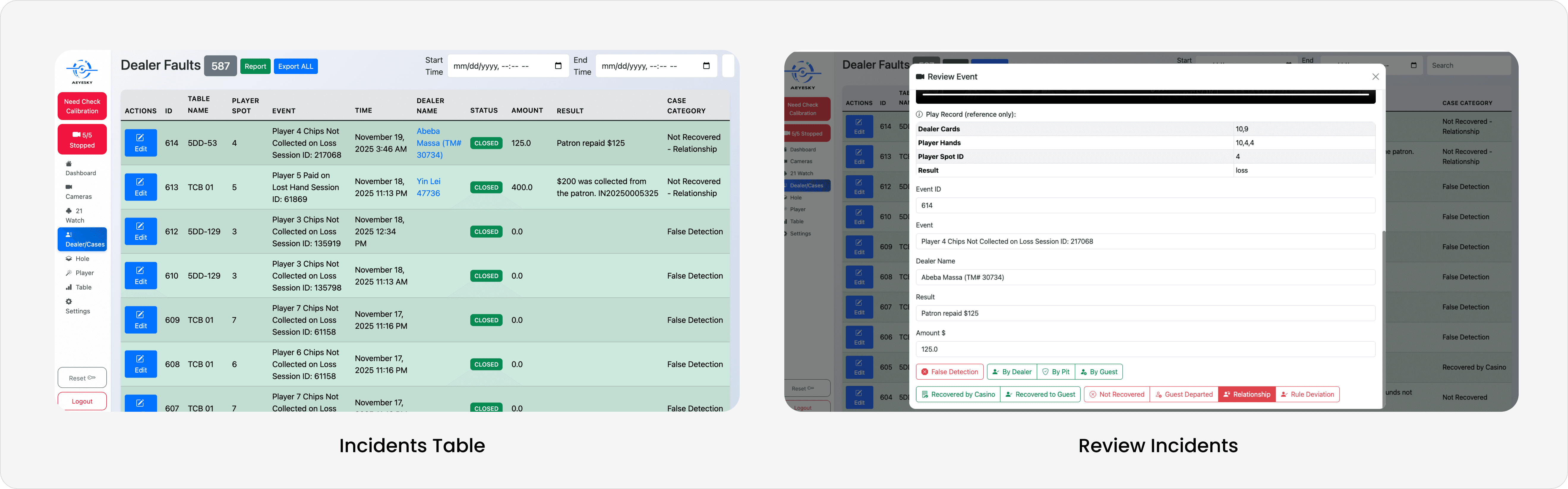 In the traditional casino environment, the detection is happened when groups of people manually checked camera for possible dealer fault. Most of them don’t have any prior experience in dataset cleanup or AI use. So there should be instruction around the screen when the users first open an interface.
